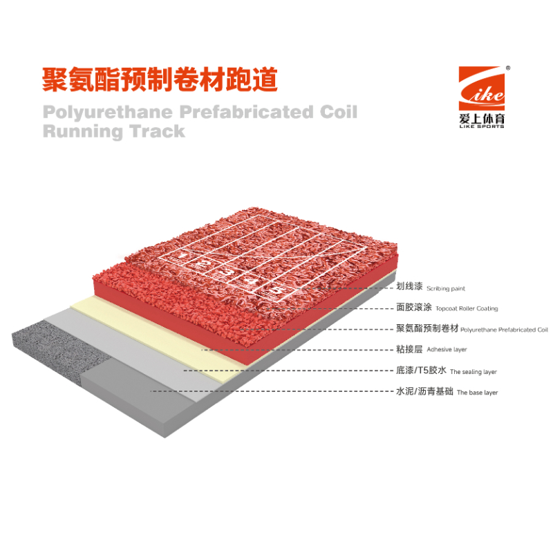 2. 撒颗粒工艺,颗粒和面胶为传统现浇型2倍用量,产品耐磨耐用性显著提升。